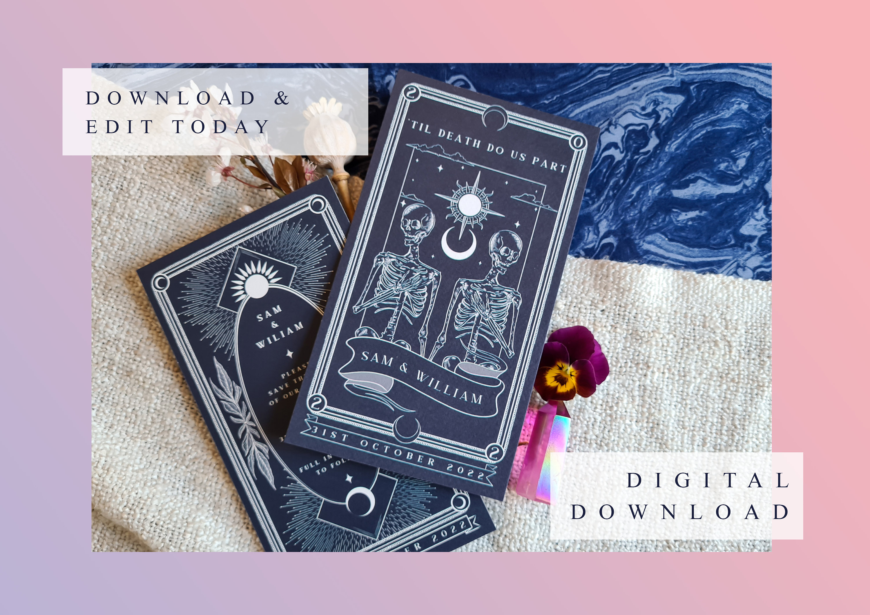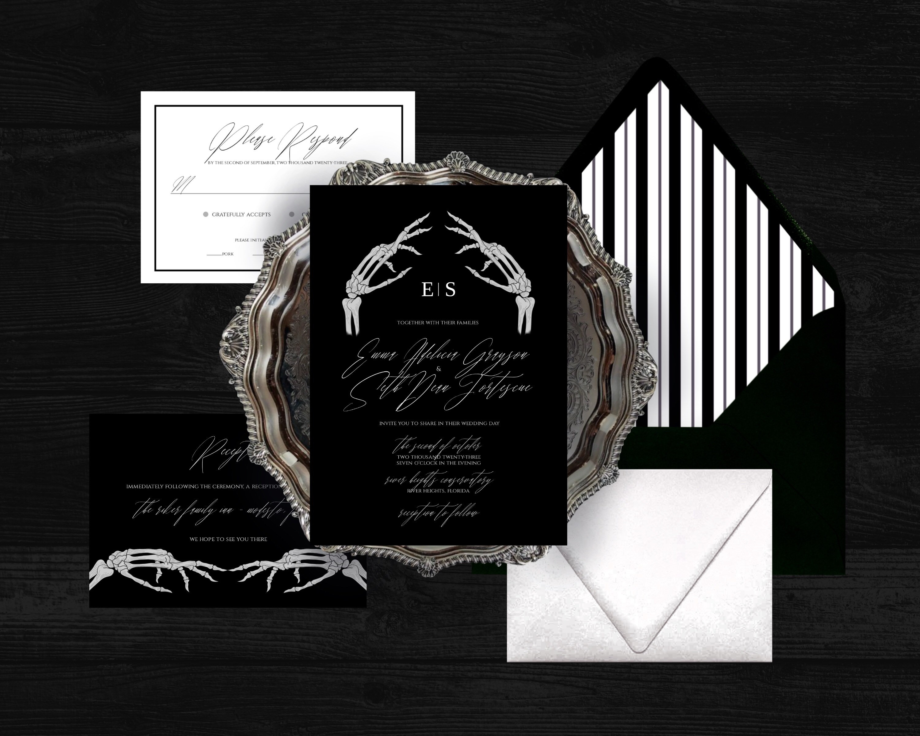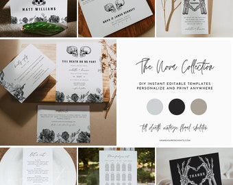 The monochromatic personalized bats ooze Halloween without being overly spooky or kitsch. Halloween Wedding Invitation Template Gothic Wedding Invite Suite Till Death Do Us Part Editable Invitation Skeleton Wedding Invite Set.