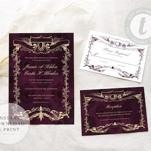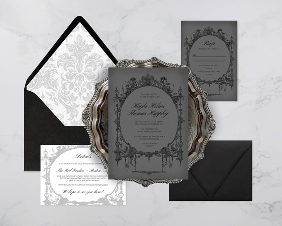 Gothic Wedding 2 Piece Invitation Suite Printed Or Printable Etsy