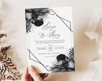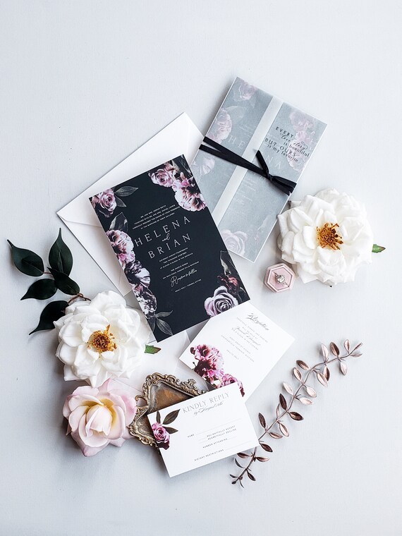 Black And Blush Wedding Invitations Gothic Wedding Etsy